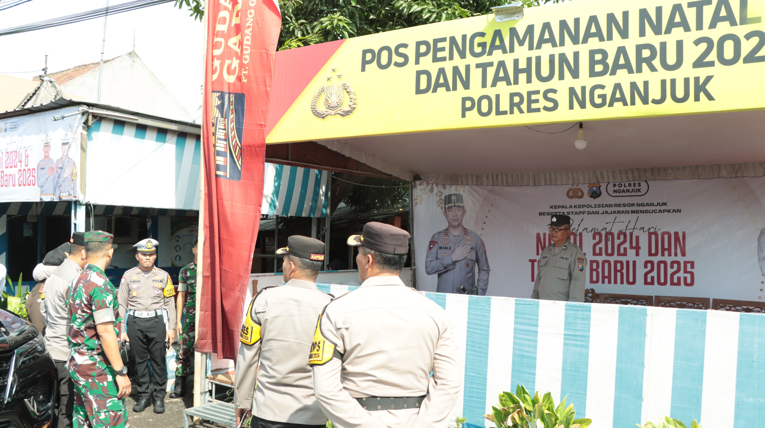 NGANJUK, PortalNusantaraNews.co.id Kapolres Nganjuk AKBP Siswantoro, S.I.K., M.H., bersama Forkopimda Kabupaten Nganjuk melakukan pengecekan kesiapan pos pengamanan dan pelayanan menjelang perayaan Natal 2024 dan Tahun Baru 2025, Jumat (20/12/2024).Baca Juga: Apel Kesiapan Tanggap Darurat Bencana di Lapangan Mako Brimob Polri, Kelapa Dua, Depok, Jawa Barat