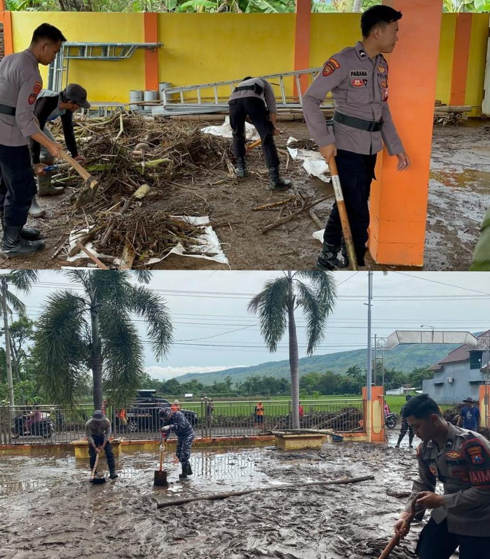 Kapolres Situbondo AKBP Rezi Dharmawan, S.I.K., M.I.K. mengungkapkan pasca terjadi banjir di wilayah Kecamatan Kendit, Polres Situbondo menerjunkan puluhan personel termasuk Sat Brimob Polda Jatim untuk membantu masyarakat membersihkan material lumpur sisa banjir di pemukiman warga yang terdampak banjir.