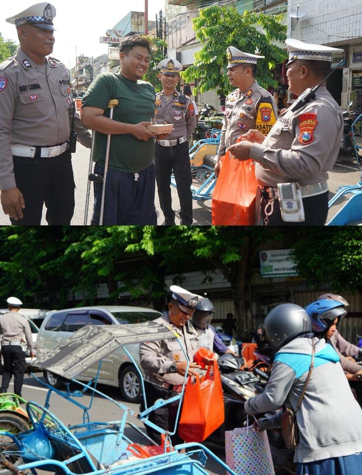 Kegiatan dimulai sejak pagi sekira jam 08.00 WIB, di mana anggota Satlantas Probolinggo Kota membagikan nasi bungkus secara langsung kepada warga.