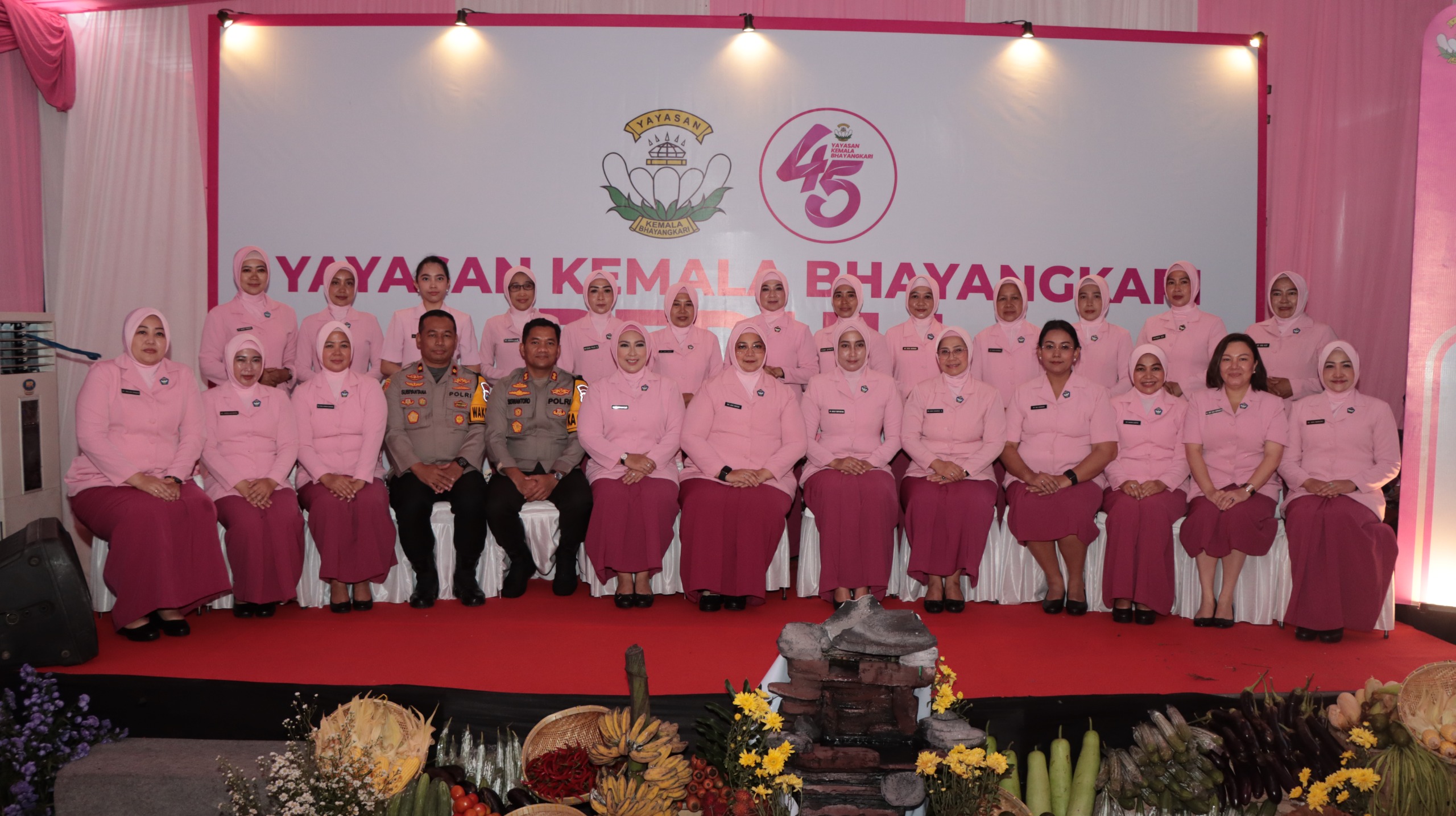 Sebelumnya, kedatangan ibu Ketua Pengurus Yayasan Kemala Bhayangkari Daerah Jawa Timur disambut meriah oleh para murid TK Kemala Bhayangkari Nganjuk, dengan kalungan selendang batik khas Nganjuk oleh Gatut Kaca dan pemberian hand bouquet oleh Srikandi dengan iringan musik drumband, serta tari Gatut Kaca Gandrung yang menjadi bagian dari tradisi penyambutan di lingkungan sekolah.