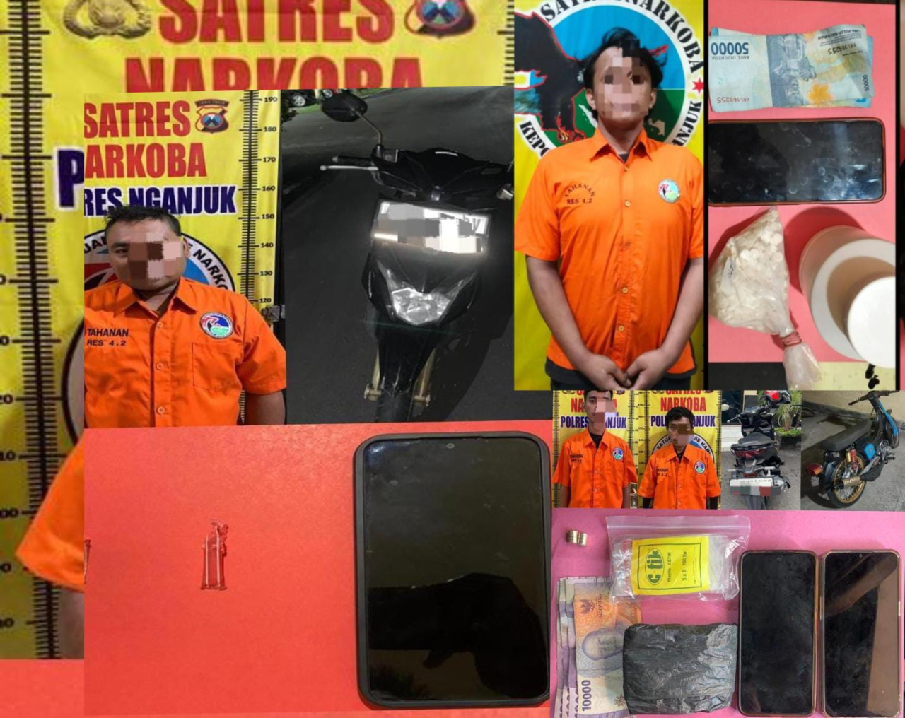 Kasat Resnarkoba Polres Nganjuk IPTU Sugiarto, S.H., menjelaskan bahwa kasus pertama diungkap pada Sabtu (1/3/2025) pukul 17.00 WIB di sebuah homestay di Desa Kepuh, Kecamatan Kertosono.