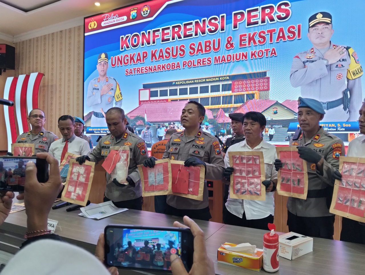 "Petugas menemukan alat bantu pengemasan dan catatan transaksi",jelas Kapolres Madiun Kota.