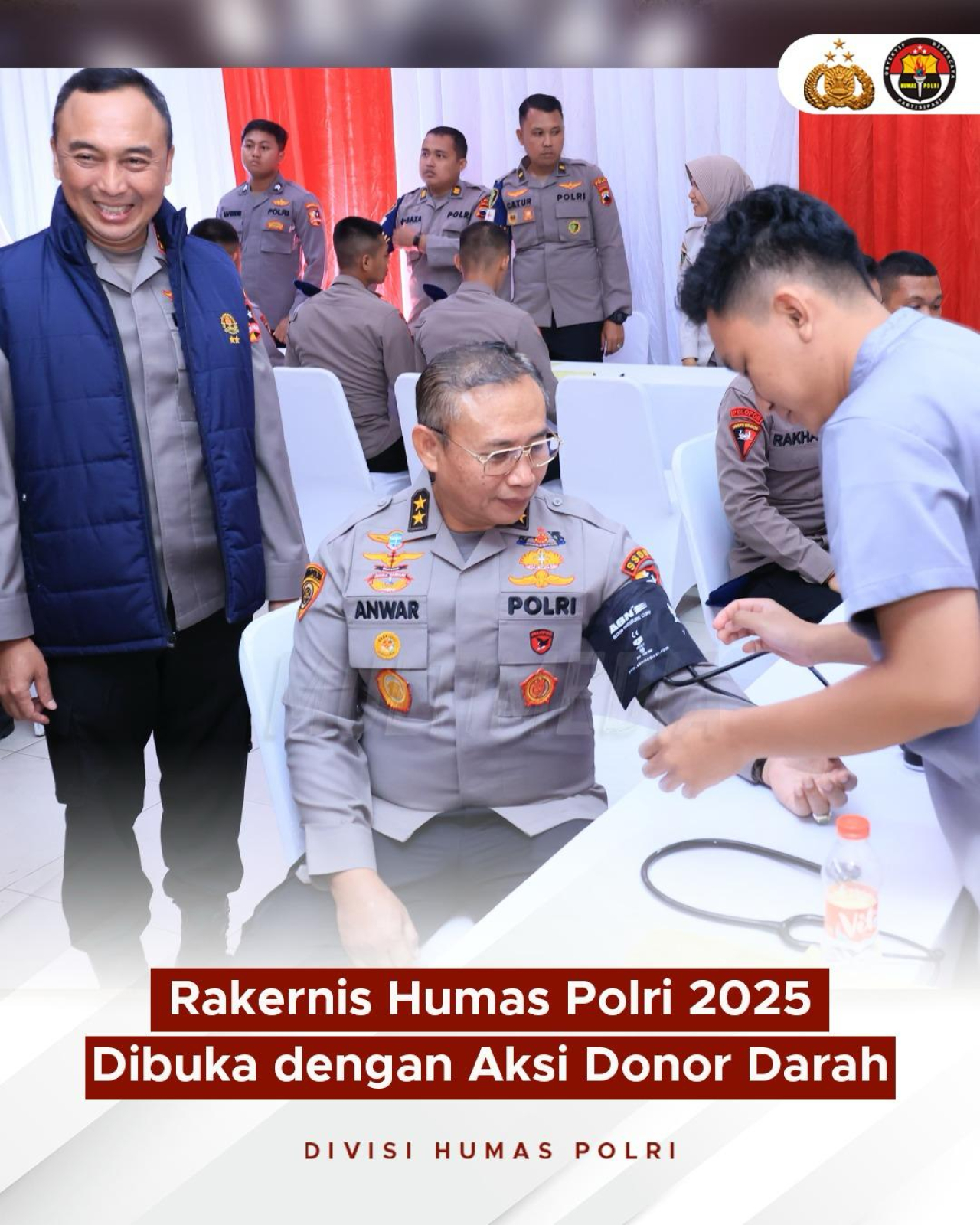 MABES POLRI, PortalNusantaraNews.co.id Rakernis Humas Polri 2025 dibuka dengan aksi donor darah. Divisi Humas Polri menggelar Rapat Kerja Teknis (Rakernis) Humas Polri 2025 di Akademi Kepolisian, Semarang, Jawa Tengah, Selasa (6/5). Kegiatan ini diawali dengan bakti sosial dan donor darah sebagai wujud kepedulian terhadap sesama. Sebanyak 100 kantong darah berhasil dikumpulkan dari peserta Rakernis, panitia, serta personel Polda Jateng dan diberikan secara simbolis oleh Kadiv Humas Polri, Irjen Pol. Dr. Sandi Nugroho, S.I.K., S.H., M.Hum., kepada Palang Merah Indonesia (PMI). Karo Penmas Divisi Humas Polri, Brigjen Pol. Trunoyudo Wisnu Andiko, S.I.K., menyebut donor darah bukan hanya bentuk empati, tetapi juga komitmen Polri dalam membangun kedekatan yang humanis dengan masyarakat.