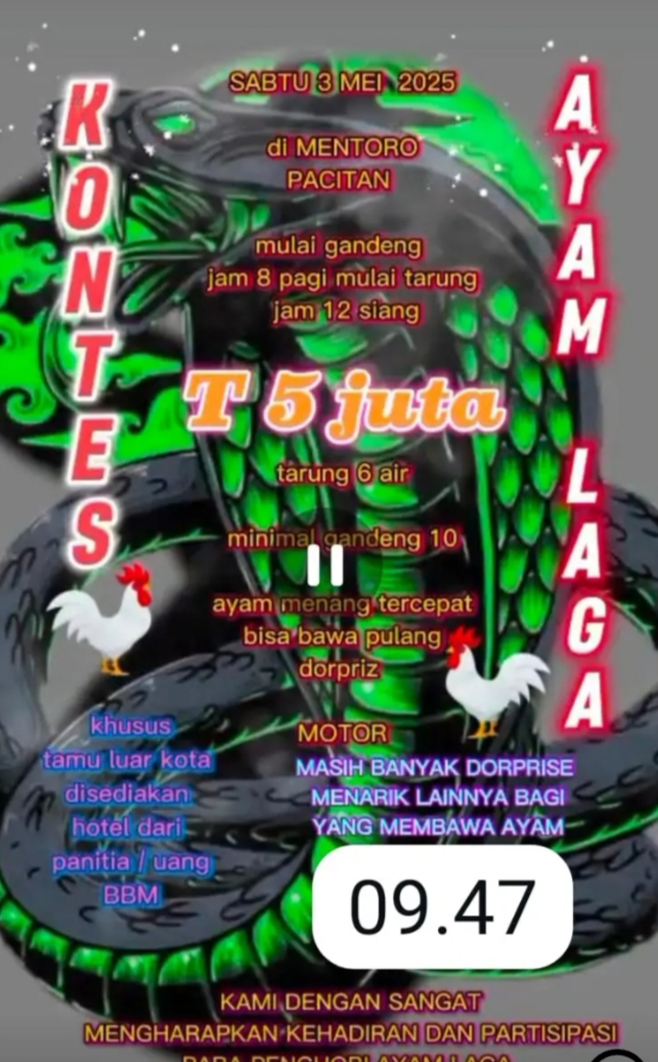 Arena sabung ayam di wilayah tersebut diduga menjadi pusat perjudian terbesar di kawasan Pacitan, bahkan disebut-sebut sebagai “markas 303” — istilah populer untuk praktik perjudian yang meresahkan masyarakat. Ironisnya, hingga saat ini belum ada tindakan tegas dari pihak kepolisian, baik dari Polres Pacitan maupun dari Polda Jawa Timur.