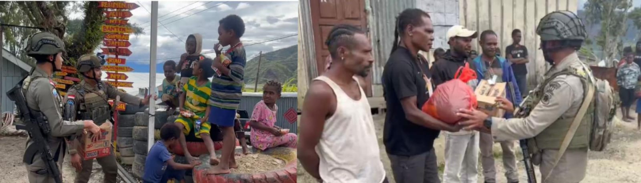 Sementara itu, di wilayah Sektor Intan Jaya, kegiatan sosial juga dilaksanakan oleh personel Satgas yang dipimpin Bripka Sudomo dengan memberikan bantuan bahan makanan (bama) kepada masyarakat yang sedang mengalami duka. Kegiatan ini merupakan wujud empati dan solidaritas aparat terhadap masyarakat yang sedang berduka, sekaligus bentuk kehadiran negara di tengah situasi sosial yang rentan.
