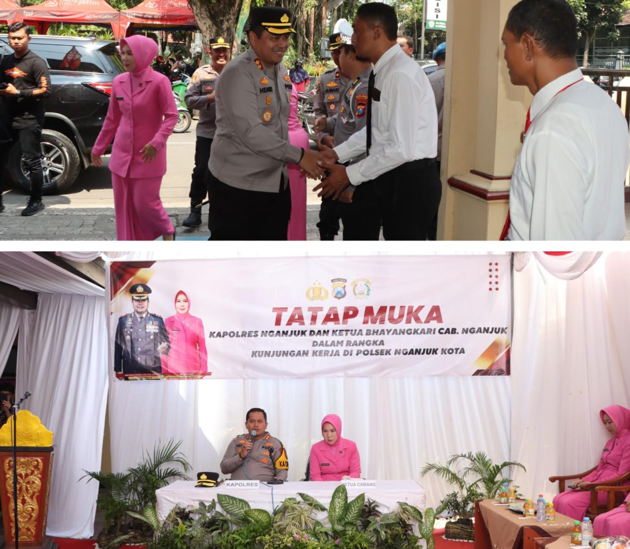 NGANJUK, PortalNusantaraNews.co.id Kapolres Nganjuk AKBP Henri Noveri Santoso, S.H., S.I.K., M.M. bersama Ketua Bhayangkari Cabang Nganjuk Ny. Agnes Henri melakukan kunjungan ke Polsek Nganjuk Kota Jumat (18/7/2025). Kunjungan tersebut dilakukan untuk memberikan arahan langsung kepada anggota serta memastikan pelayanan kepolisian berjalan optimal.