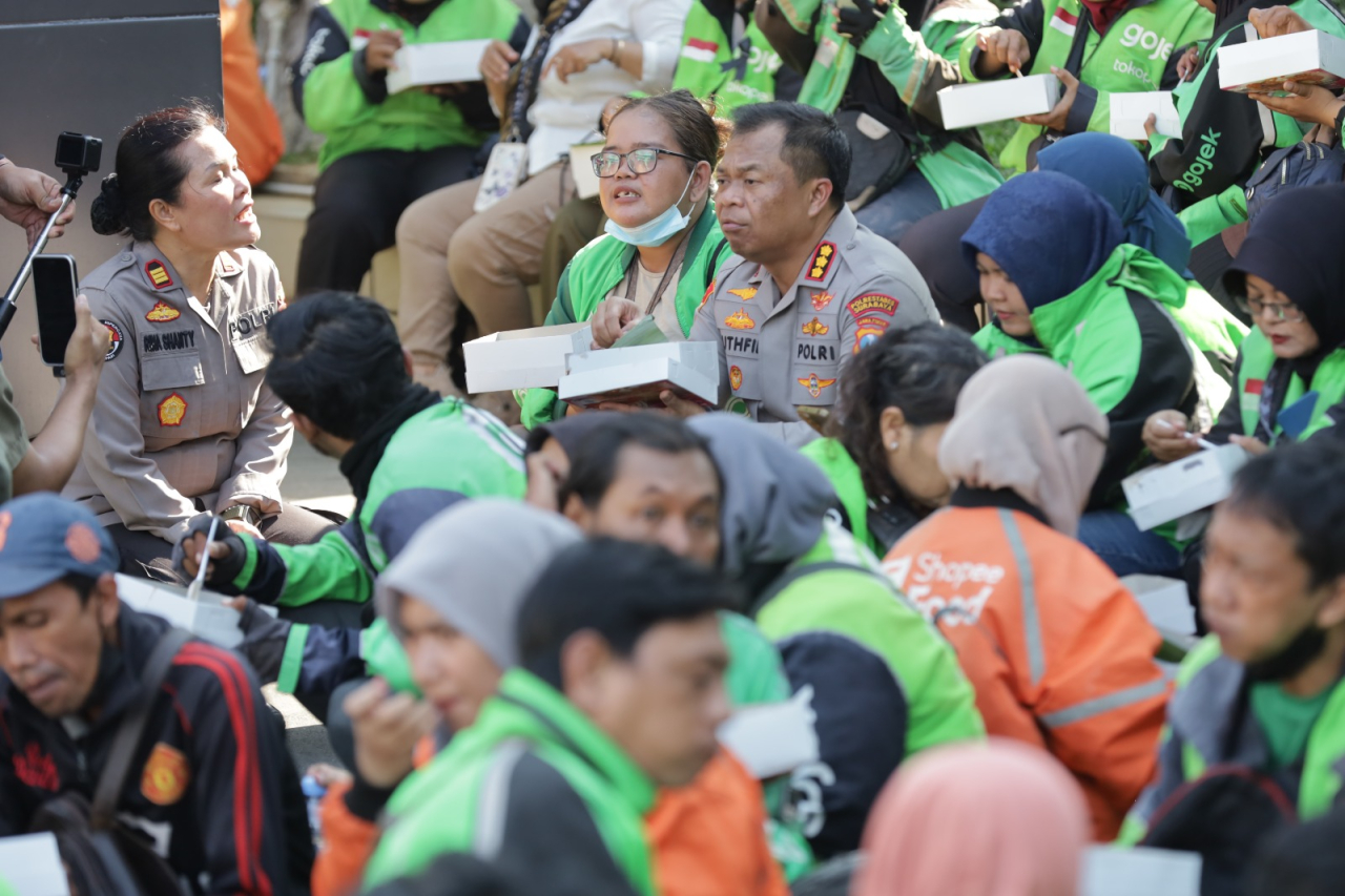 "Bantuan berupa paket beras kepada rekan Ojol ini sebagai bentuk kepedulian kita kepada sesama,"kata Kombes Luthfi.