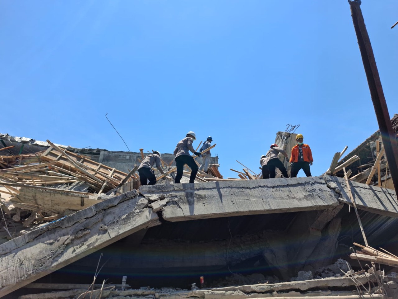 Sejak pagi hingga siang hari, petugas terus bekerja bergantian di area reruntuhan.