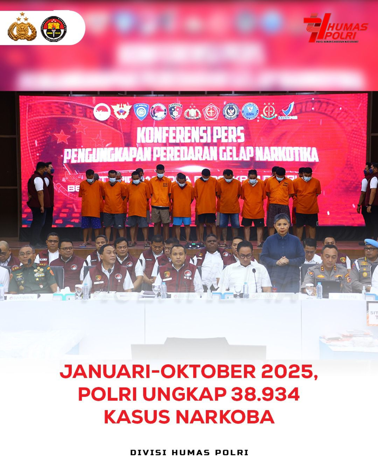 “Keberhasilan ini merupakan wujud nyata sinergi lintas lembaga, mulai dari BNN, Bea Cukai, Kemenkumham, hingga TNI dan instansi penegak hukum lainnya. Pemberantasan narkoba tidak bisa dilakukan sendiri, perlu kolaborasi yang kuat,” ujar Kabareskrim Polri Komjen Pol. Drs. Syahar Diantono, M.Si., dalam konferensi pers yang digelar di Aula Awaloeddin Djamin, Gedung Bareskrim Polri, Rabu (22/10).