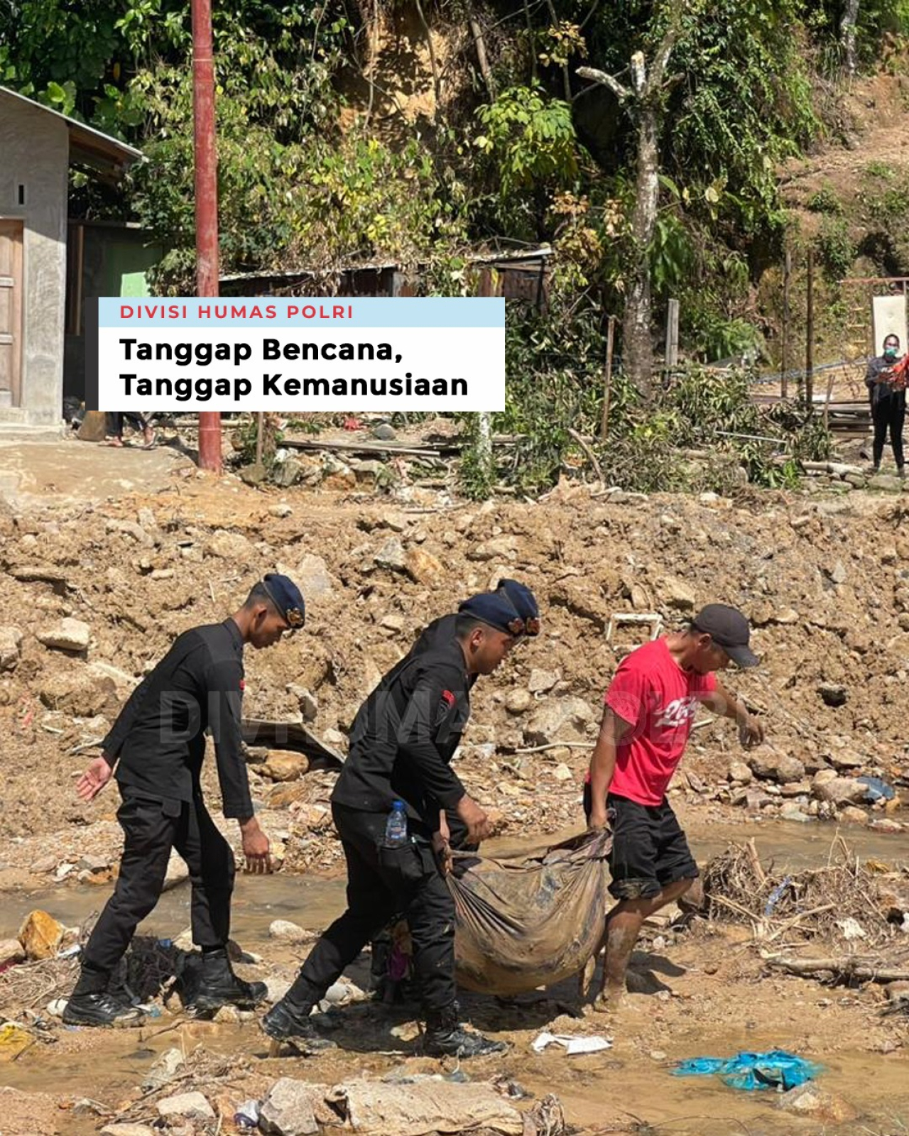 Saat bencana melanda, Polisi langsung turun membantu—membersihkan material yang menutup akses dan mengevakuasi warga dari lokasi berbahaya. Setiap langkah dilakukan cepat, penuh empati, dan fokus pada penyelamatan.