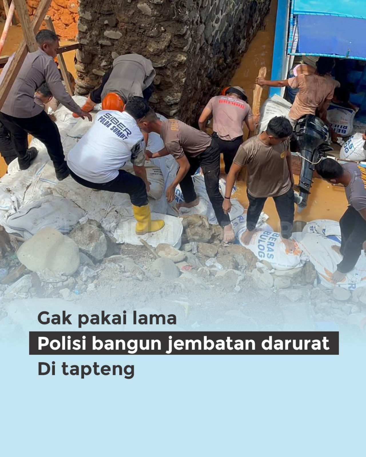 Akses Pandan–Kalangan di Tapteng sempat terputus akibat bencana alam. Polisi langsung turun sejak pagi membangun jembatan darurat agar mobilitas warga dan jalur logistik di Jalinsum kembali pulih. Dengan peralatan terbatas, Polisi bekerja nonstop demi memastikan masyarakat tidak terisolasi dan bantuan tetap mengalir.