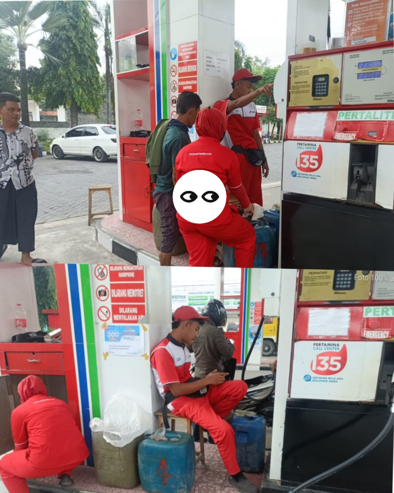 Ketika dikonfirmasi, seorang operator SPBU menyatakan bahwa jerigen yang dibawa oleh pengangsu hanya berkapasitas 75 liter, bukan 100 liter seperti yang terlihat. Operator tersebut juga enggan memberikan jawaban terkait dengan legalitas pengisian BBM menggunakan jerigen. Yang sangat di sayangkan saat diminta untuk menunjukan bukti rekom yang berbarcode, oleh awkmedia.